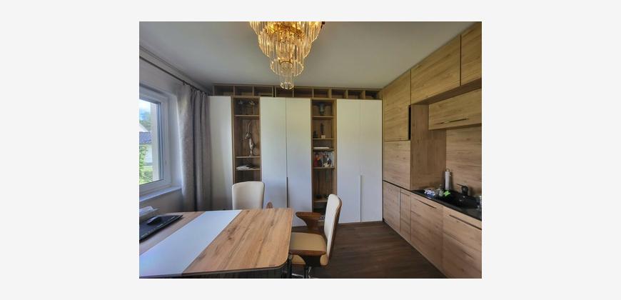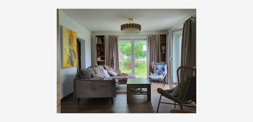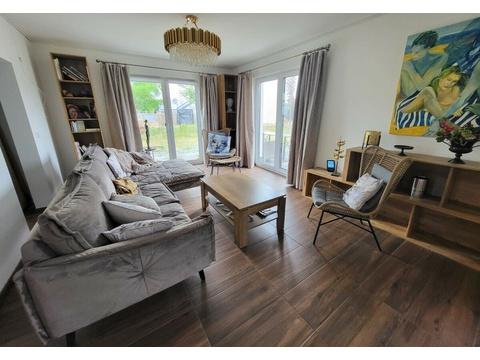 AusstattungErdwärmepumpe, Fußbodenheizung, einheitliche Bodenfliesen im ganzen Haus, Entkalker, Außenrollos an allen Fenstern, teilw. elektrisch, Insektenschutz und Sichtschutzrollos, Badmöblierungen, Einbauküche, teilw. moderne Glasschiebetüren, Gartenhaus,