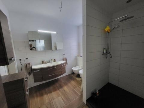 Im Erdgeschoss befindet sich ein weiteres Zimmer , mit zwei Fenstern, Richtung Süden und Westen, ein elegant möbliertes Duschbad mit WC, Bidet und Waschbecken, und ein abgetrennter Hauswirtschaftsraum, zwei Fenster.