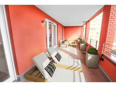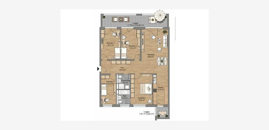 Die Wohnungen wurden auf dem Gelände eines ehemaligen Bürogebäudes an der Lyoner Straße 38 errichtet. Sie zeichnen sich durch offene, moderne Grundrisse und großzügige Loggien aus, die für ein angenehmes Wohngefühl sorgen.