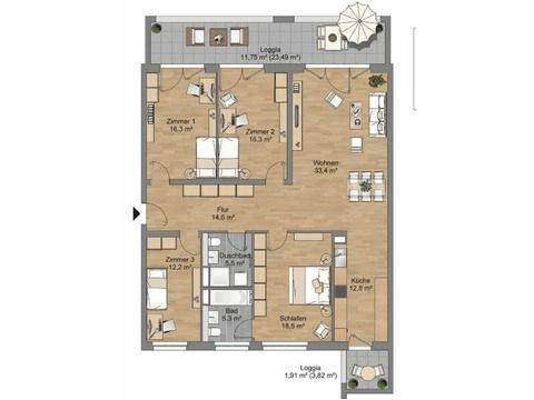 Die dargestellte Möblierung ist ein Vorschlag und somit variabel. Verbindlich für den Leistungsumfang ist der Mietvertrag. Die in den Unterlagen gemachten Angaben stammen vom Auftraggeber und dienen der Orientierung. Zusicherungen baulicher Beschaffenheiten werden ausdrücklich nicht übernommen. Bildnachweis: GWH | SELECT Immobilien GmbH