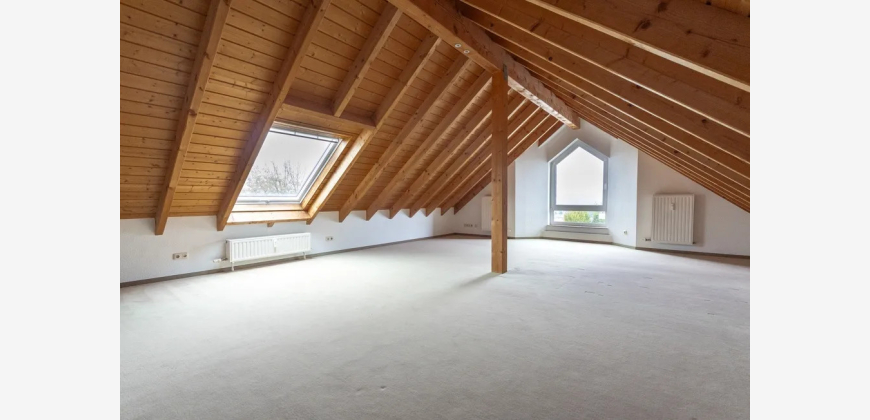 Nachdem Sie Ihr Fahrzeug auf dem Außenstellplatz am Haus abgestellt haben, betreten Sie das gepflegte Mehrfamilienhaus und gelangen über das Treppenhaus in die schöne, ca. 134,9 m² große 4-Zimmer-Maisonettewohnung im Dachgeschoss.