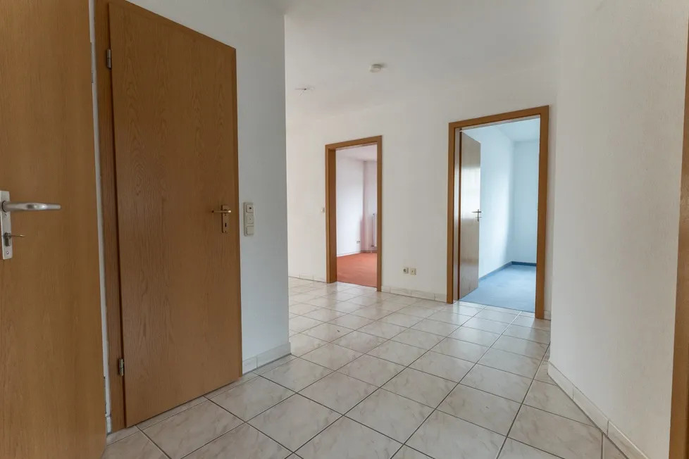 Beim Betreten der Wohnung befinden Sie sich in der zentralen Diele, von der aus alle Räume erreichbar sind. Gleich zu Ihrer linken Seite führt eine Treppe nach oben in den ausgebauten Dachboden. Unterhalb der Treppe befindet sich ein praktischer Abstellraum.