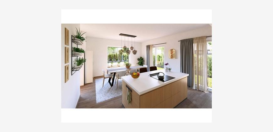 Das Herzstück dieses Hauses bildet der großzügige, offene Wohn-, Ess- und Küchenbereich. Hier fließen Kochen, Genießen und gemeinsames Leben harmonisch ineinander - und doch bleibt jeder Bereich klar gegliedert. Die Küche liegt dabei praktisch am Hauswirtschaftsraum, sodass kurze Wege Ihren Alltag spürbar erleichtern.