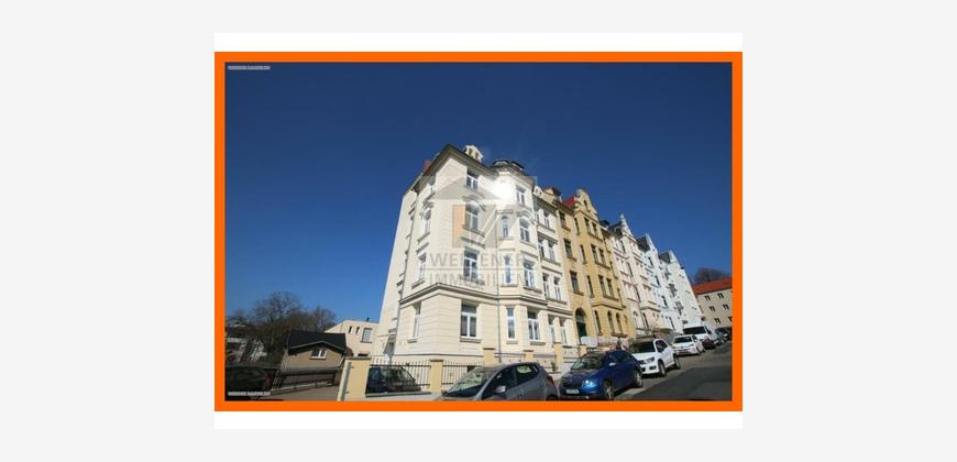 Das Haus gehört zu einem denkmalgeschützten großbürgerlichen Wohnquartier von Gera.