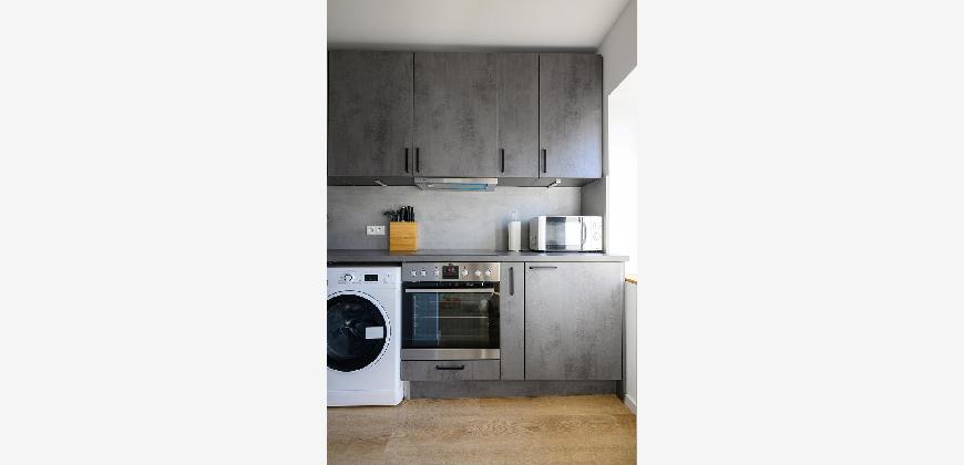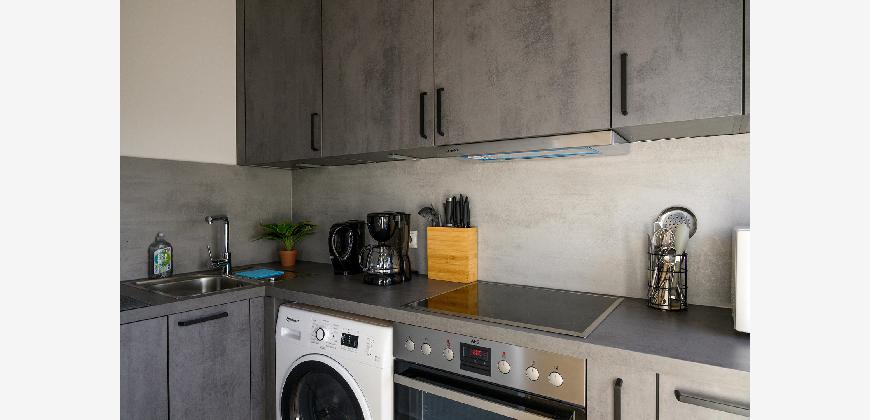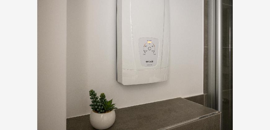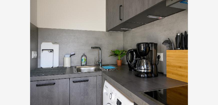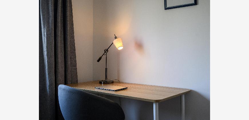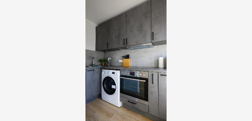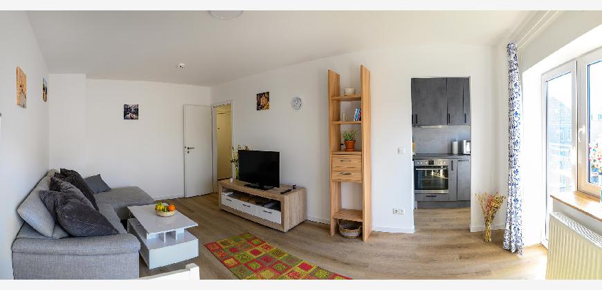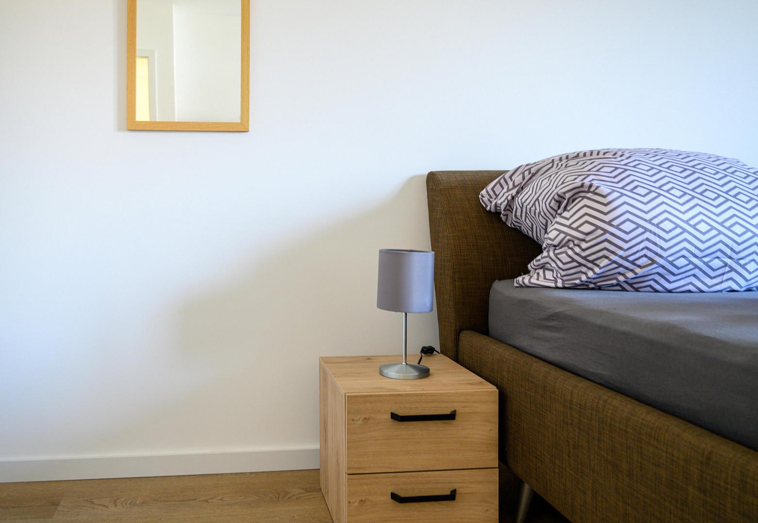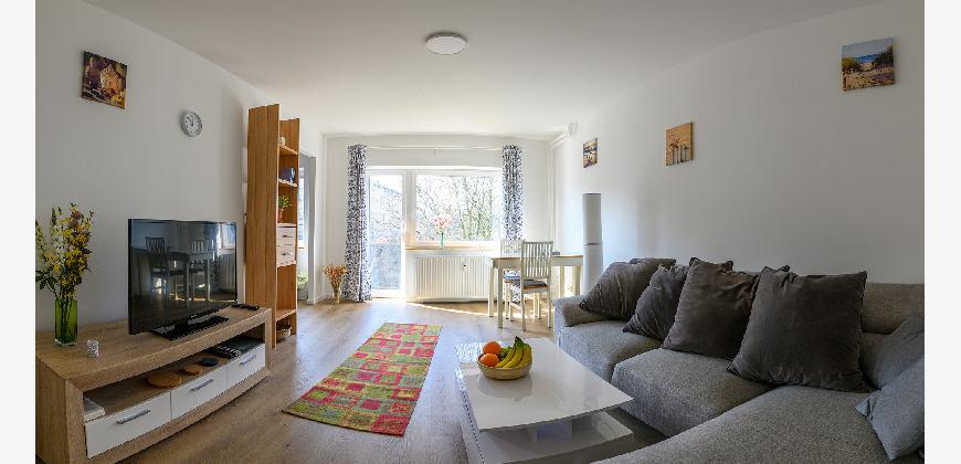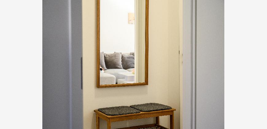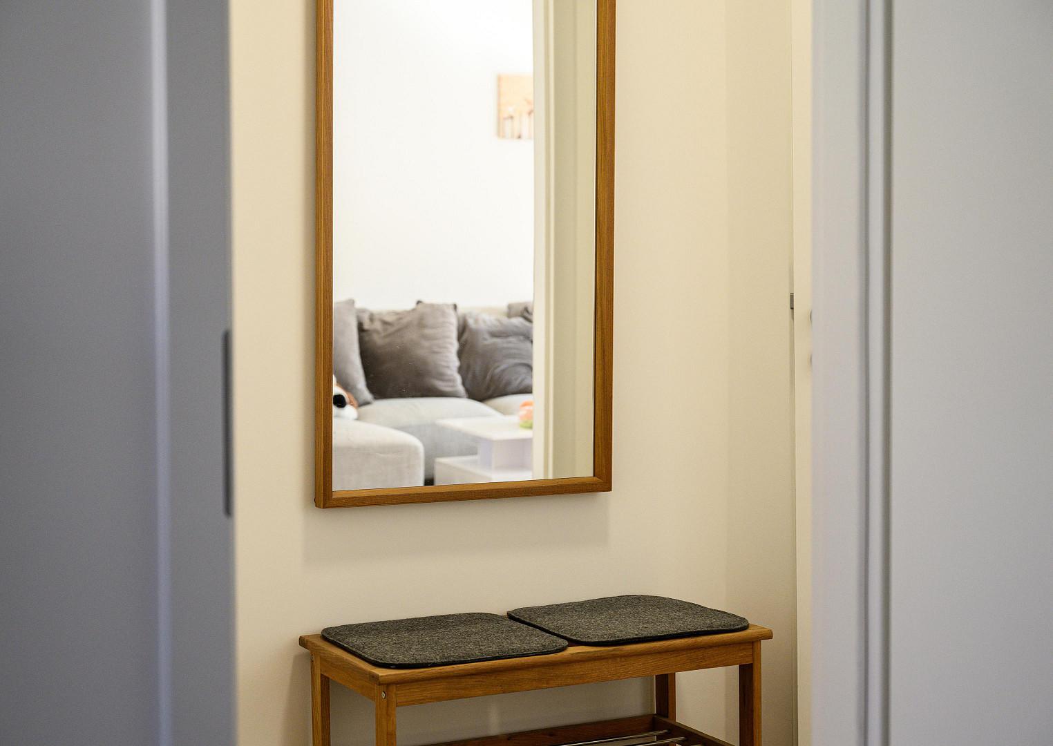 In der gesamten Wohnung, mit Ausnahme des Badezimmers, ist edler und wasserfester Vinylboden in schicker Holzoptik verlegt. Das Badezimmer ist mit neuen Premium-Elementen ausgestattet und beinhaltet eine Dusche, ein WC, einen Waschtisch mit Unterschrank, einen modernen Spiegelschrank mit integrierter Beleuchtung und wird durch die hochwertigen Fliesen in schicker Optik abgerundet.