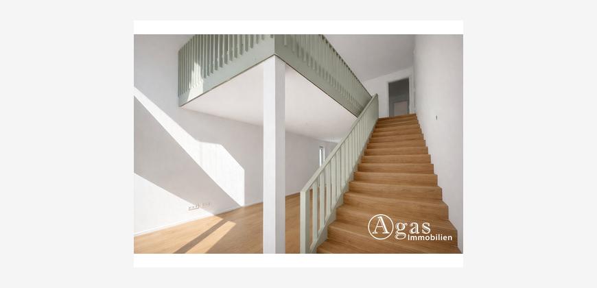Bereits beim Eintreten spürt man die Großzügigkeit dieser besonderen Wohnung. Der offen gestaltete Wohn- und Essbereich mit Galerie schafft ein luftiges Raumgefühl und wird durch große Fensterflächen hervorragend belichtet. Hochwertige Eichendielen, stilvolle Holzfenster sowie eine angenehme Fußbodenheizung sorgen für ein behagliches Wohnambiente auf beiden Ebenen.
