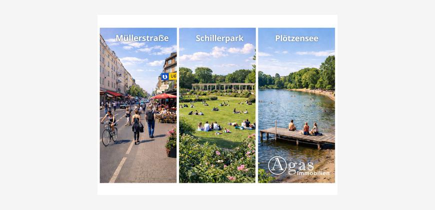 Trotz urbaner Lage kommt auch die Erholung nicht zu kurz. Der nahegelegene Volkspark Rehberge bietet weitläufige Grünflächen, Spazierwege, Sportmöglichkeiten und sogar ein Freibad. Der Schillerpark – als UNESCO-Welterbe Teil der Berliner Moderne – lädt ebenfalls zum Verweilen ein.