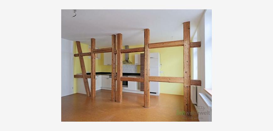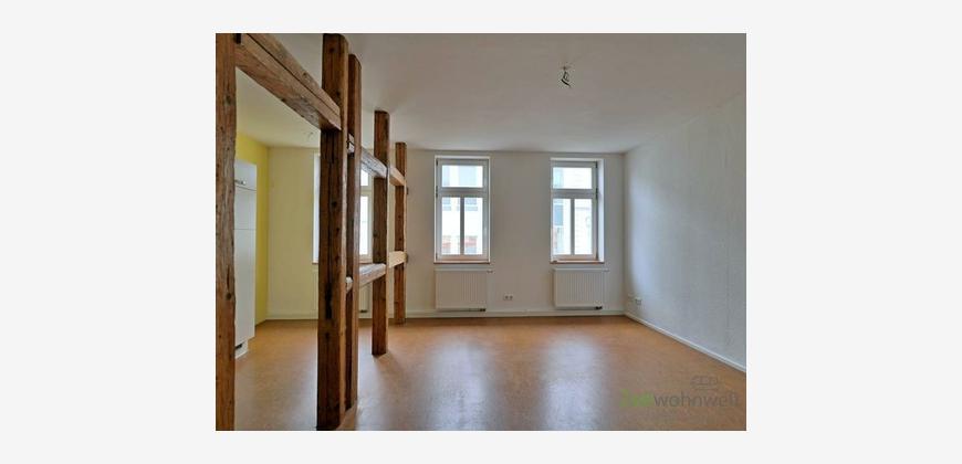 ### Please note the availability date! Bitte das Verfügbarkeitsdatum beachten! ### großzügige, helle Wohnung in der Meininger Fussgängerzone mit OSB-Holzfußböden; bezugsfertig renoviert; großes Wohnzimmer mit Holzbalken und offener Küche (EBK inklusive), großes Schlafzimmer; drittes Zimmer zum ruhigen Innenhof; Bad mit Dusche und Fenster, kein Keller, kein PKW-Stellplatz; Pflichtangaben zum Energieausweis: Energieausweis gültig bis: 11.05.2030; Baujahr Gebäude: 1998; Energieausweis: nach Verbrauch; Energieverbrauch: 95.2 kWh/(m²a); Energieeffizienzklasse: C; Primärer Energieträger: Erdgas H