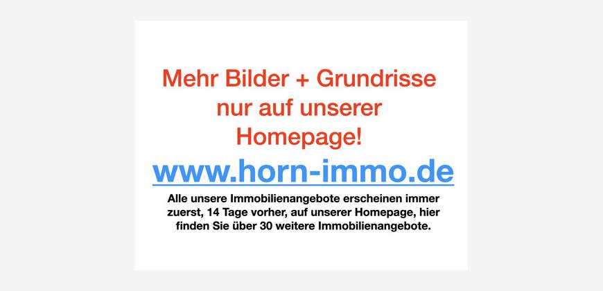 TIPP: Alle Immobilienangebote unserer Firma finden Sie die ersten 8 Tage nur auf unserer eigenen Homepage www.horn-immo.de. Erst nach ca. 8-14 Tagen werden von uns die Portale Immobilienscout24, immowelt und immonet bedient