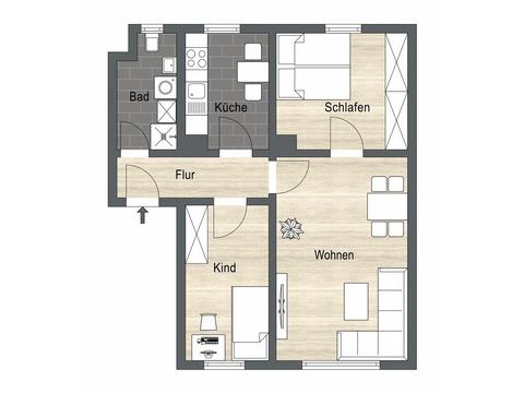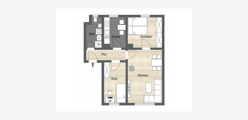 Das Herzstück der Wohnung bildet die separate Küche, die mit einer schönen Einbauküche ausgestattet ist und sich hervorragend für die Zubereitung kulinarischer Köstlichkeiten eignet. Ein Badezimmer mit Fenster bietet eine erfrischende Dusche und ist zudem mit einem praktischen Waschmaschinenanschluss versehen.