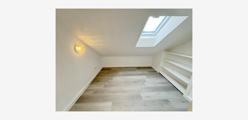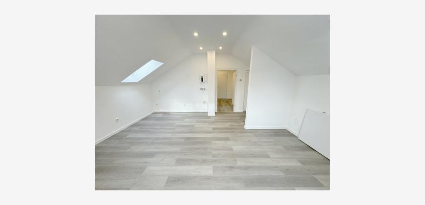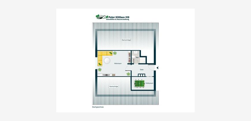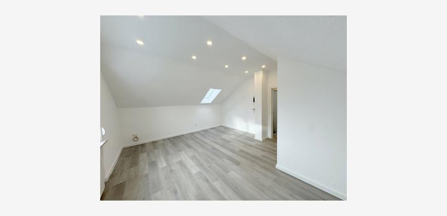 Willkommen in Ihrem neuen Zuhause in Lohmar! Diese modernisierte Dachgeschosswohnung befindet sich in einem gepflegten, 6-Parteienhaus und bietet rund 25 m² stilvollen Wohnkomfort, ideal für Singles oder Eigennutzer mit einem flexiblen Lebensstil. Das intelligente Raumkonzept optimiert die Flächennutzung und schafft ein helles, offenes Ambiente, unterstützt durch maßgeschneiderte Einbauschränke, die in die Dachschrägen integriert wurden, um den Stauraum zu maximieren.