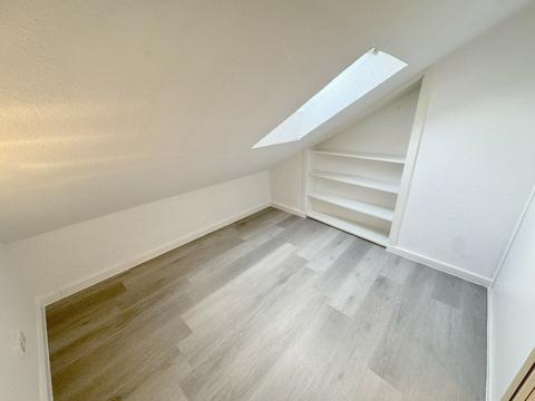 Ein kleines Ankleidezimmer in der Dachschräge (ehemals genutzt als Schlafnische) bietet zusätzlichen Platz für individuelle Aufbewahrungsideen, während der großzügige Wohnbereich Raum für kreative Gestaltungsmöglichkeiten offenbart. Die Ausstattung der Wohnung entspricht einem normalen Standard und erfüllt die zeitgemäßen Anforderungen an digitales Arbeiten und flexibles Wohnen. Ein kompaktes Badezimmer rundet das Angebot ab und bietet Funktionalität.