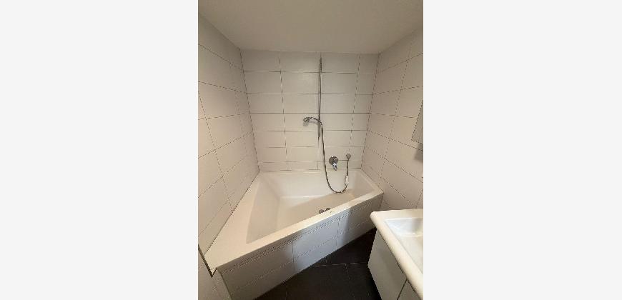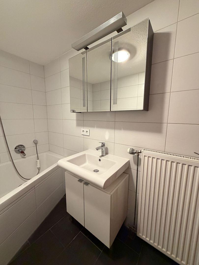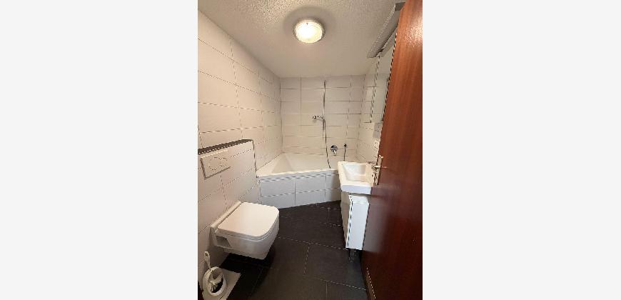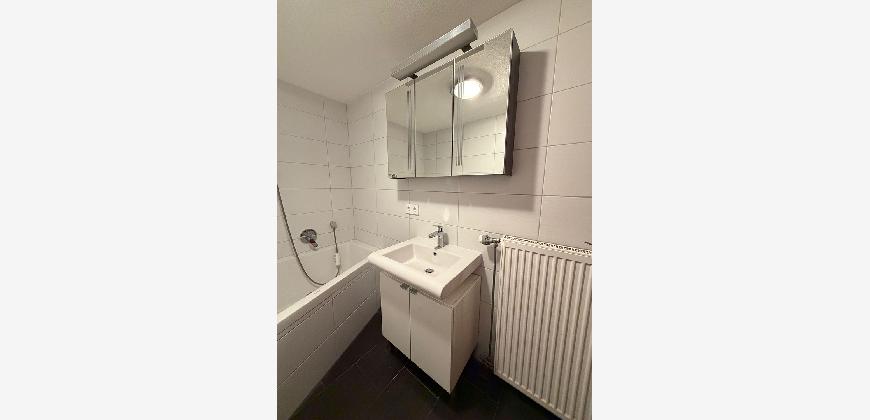 Die abgetrennte Küchenzeile ist mit einer Einbauküche inklusive Kühlschrank, Herd, Backofen, Abzugshaube, Spülmaschine sowie Spülbecken ausgestattet. Das moderne Badezimmer verfügt über eine große Eckbadewanne sowie einen Waschtisch mit beleuchtetem Spiegelschrank. Im Flur- und Eingangsbereich befinden sich praktische, wandmontierte Stauraumlösungen. Große Fensterflächen im Wohnbereich sorgen für viel Tageslicht und einen angenehmen Raumeindruck. Die Terrasse erweitert den Wohnraum ins Freie. Ein eigener Stellplatz, ein geräumiges Kellerabteil sowie eine separate Waschküche runden das Angebot ab.
