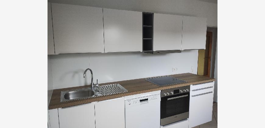 Die EBK ist neu, sie umfasst E-Herd mit Ceranfeld, Dunstabzugshaube und Kühlschrank mit Gefrierfach; eine Spülmaschine ist ebenfalls vorhanden.