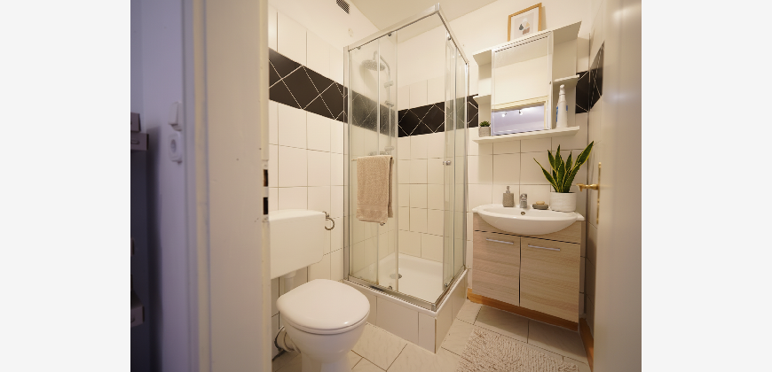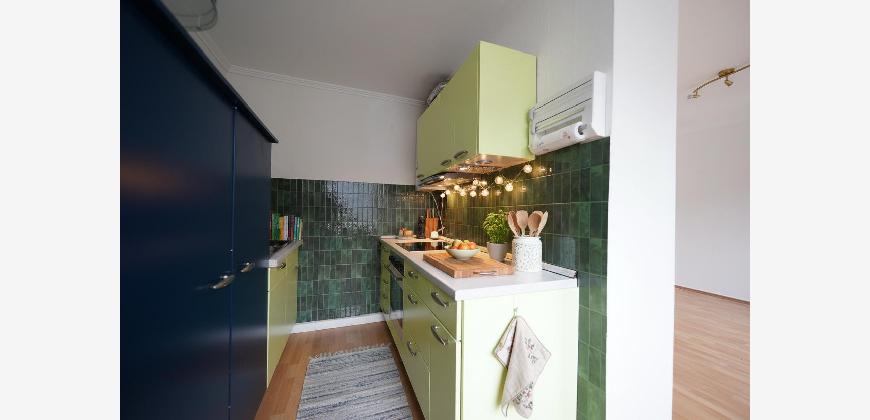 Die Wohnung ist bezugsfertig, mit neuem Premium-Boden mit Trittschalldämmung, neue Spülmaschine in der Küche. Die Einbauküche und die kürzliche Modernisierung machen sie zum perfekten Ort zum Entspannen nach einem langen Tag.