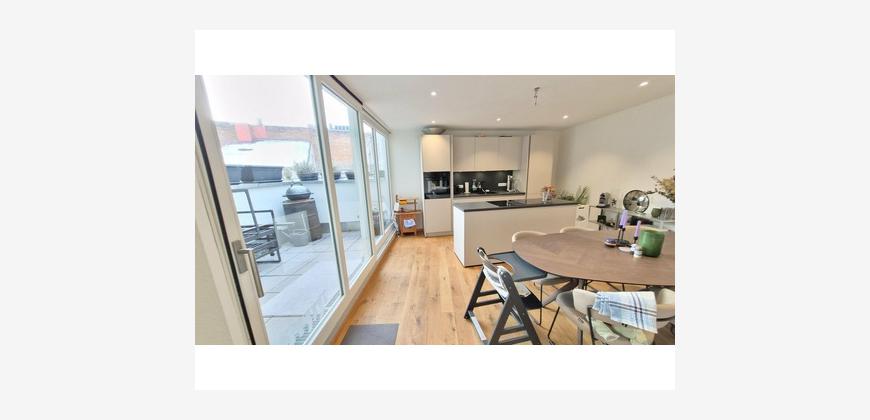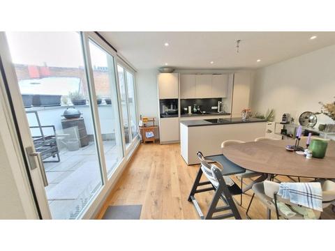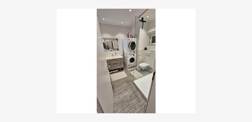 Die Wohnung umfasst 4 Räume, eine Wohnküche mit Zugang zur großzügigen Terrasse, eine geräumige Diele, ein modernes freundliches Badezimmer mit Dusche, Waschtisch, WC und Waschmaschinenplatz sowie Fenster zur Belüftung, zusätzlich ein Gäste-WC mit Fenster sowie eine Abstellkammer.