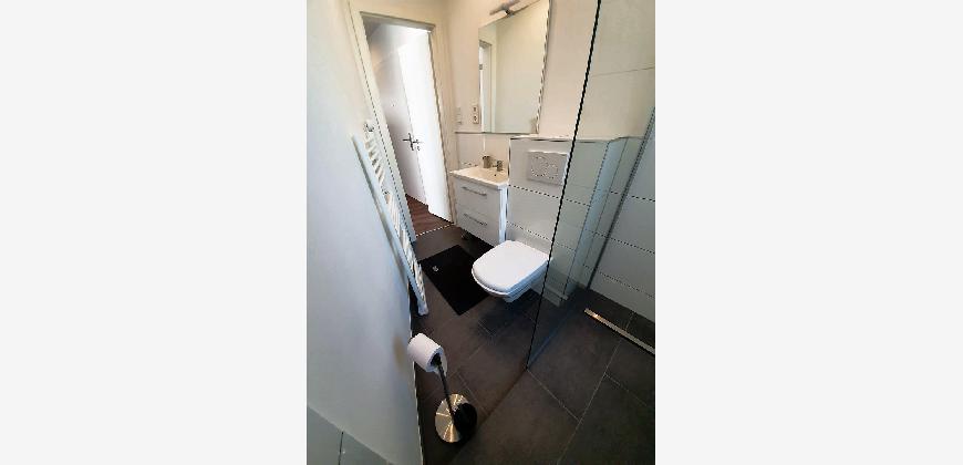 Das neue Badezimmer verfügt über ein Fenster, eine begehbare Dusche mit Rain-Shower und einen Handtuchheizkörper.