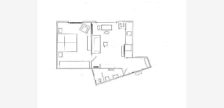 Von der Diele aus gelangen Sie ins Wohnzimmer mit angrenzender Küche.