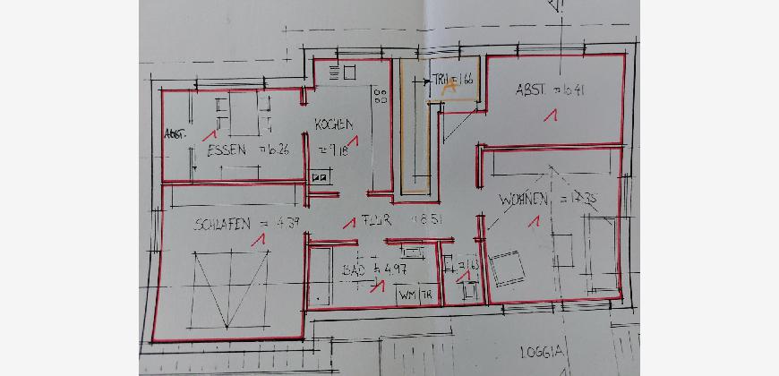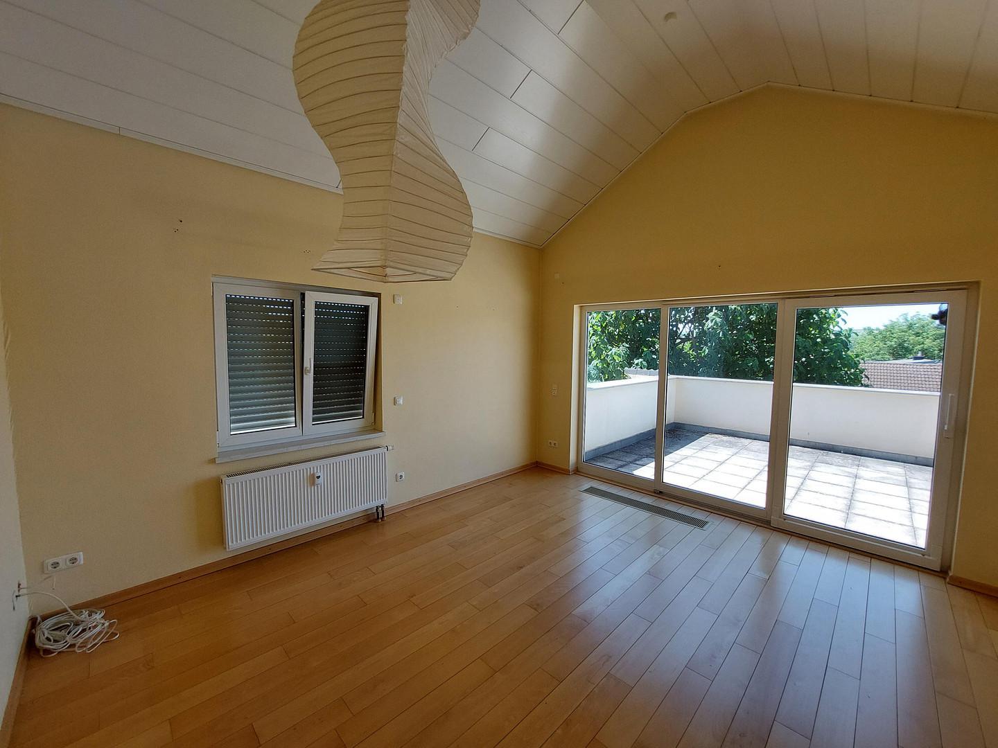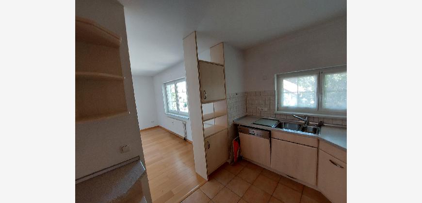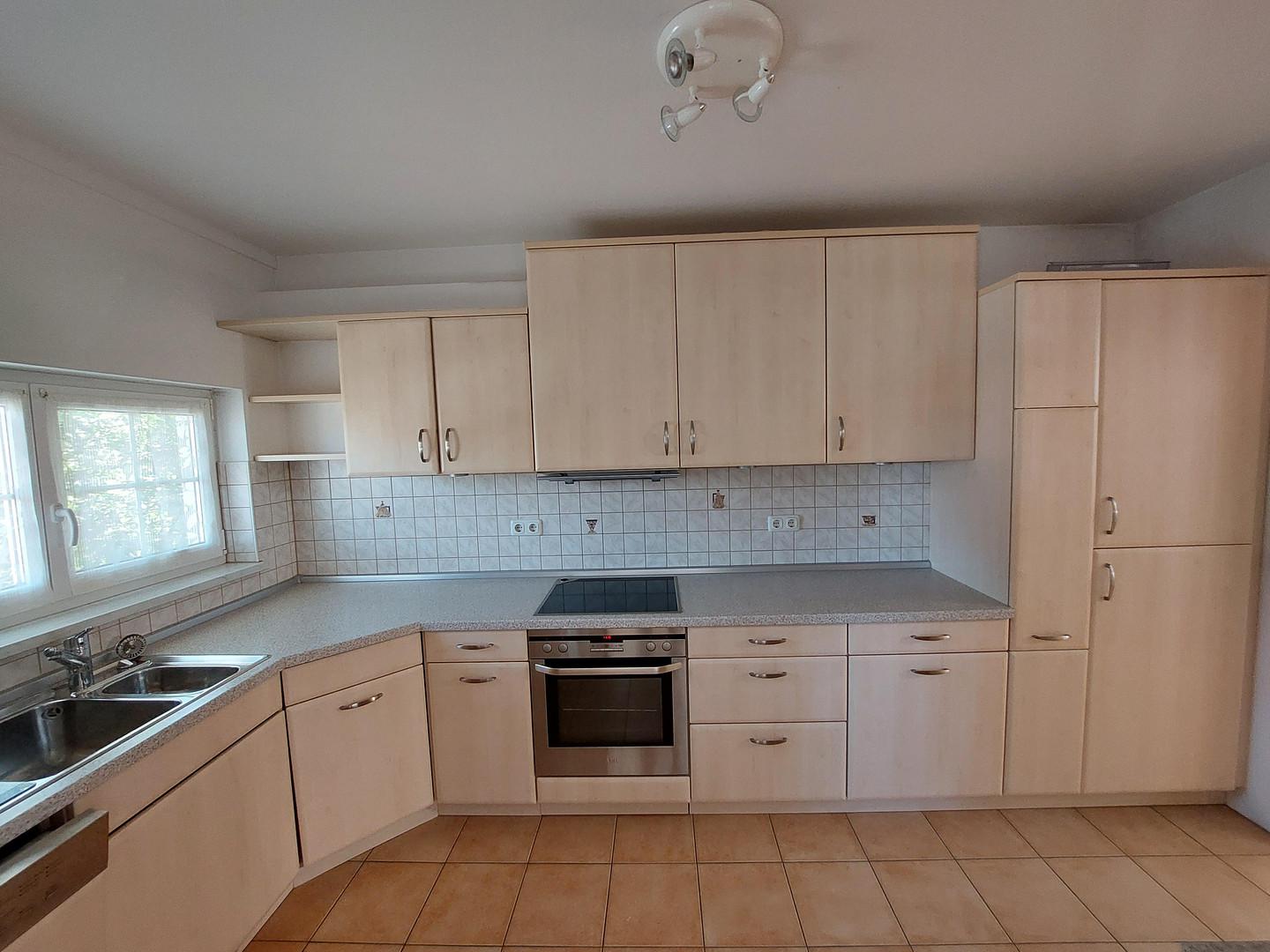 Einbauküche mit direkt anschließendem Essbereich. Parkettboden im Wohn- und Esszimmer, sowie im gesamten Flur. Schlafzimmer ist mit Parkettboden ausgestattet.