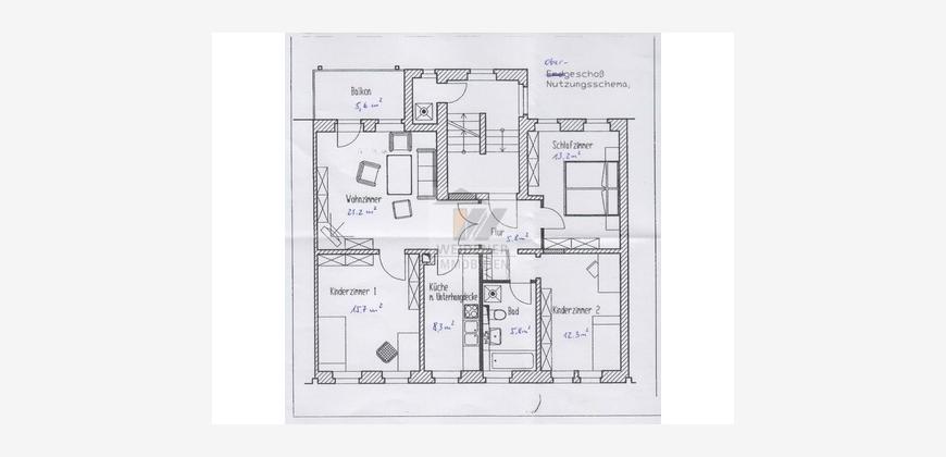 Nach Freizug der Wohnung werden noch diverse Modernisierungsarbeiten ( Erneuerung Bodenbelag ) in einem Kinderzimmer, im Schlafzimmer und im Küchenbereich durchgeführt.