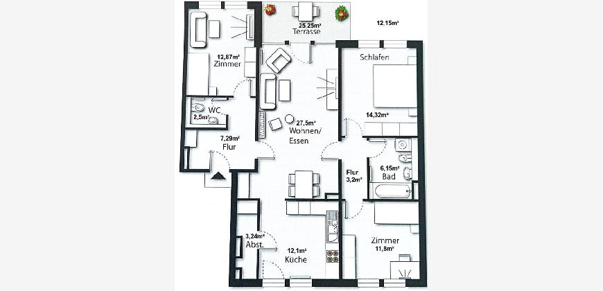 Die Wohnung präsentiert sich in einem sehr gepflegten, sofort nutzbaren Zustand und eignet sich sowohl für Eigennutzer als auch für Käufer, die eine Wohnung in attraktiver Lage nach eigenen Vorstellungen weiterentwickeln möchten.
