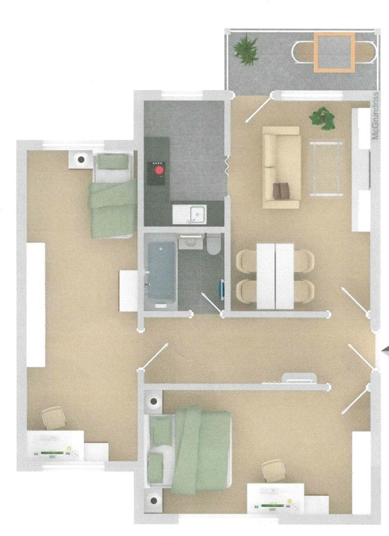 - Gästezimmer (nur 3-Raumwohnung) wenn vorhanden: ausziehbares Bett,, Schrank TV