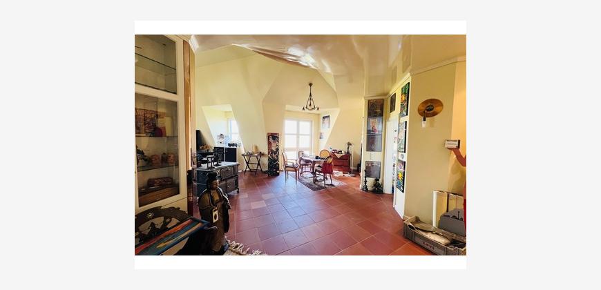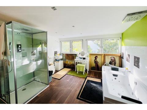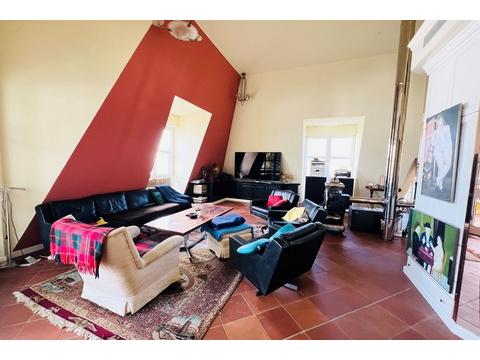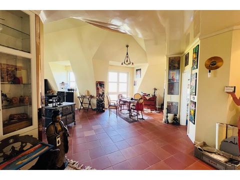 Bereits beim Betreten spürt man das beeindruckende Raumgefühl und den besonderen Charme dieser großzügig geschnittenen Wohnung. Der rund 70 m² große Wohn- und Essbereich bildet das Herzstück des Domizils und überzeugt durch seine luftige Offenheit. Hier sind eine gemütliche Sitzecke, ein Arbeitsbereich sowie ein einladender Essbereich mit historischem Ofen harmonisch vereint – ideal für stilvolles Wohnen und repräsentatives Empfangen.