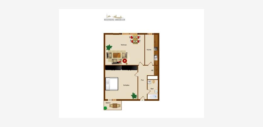 Diese schöne 2 Zimmerwohnung besticht durch die ausgesprochen zentrale Lage in Elberfeld inklusive Balkon. Von der Diele aus sind alle Räume der Wohnung zu erreichen. Zur Linken der Wohnungseingangstüre befindet sich das ca. 20 m² große Schlafzimmer. Von diesem betreten Sie den Balkon. An das Schlafzimmer anschließend erreichen Sie das helle und freundliche, ca. 25 m² große Wohnzimmer. Neben dem Wohnzimmer ist die Küche gelegen. Das Badezimmer verfügt über eine Duschwanne, WC und Waschbecken. Zur Wohnung gehört noch ein Kellerabteil.