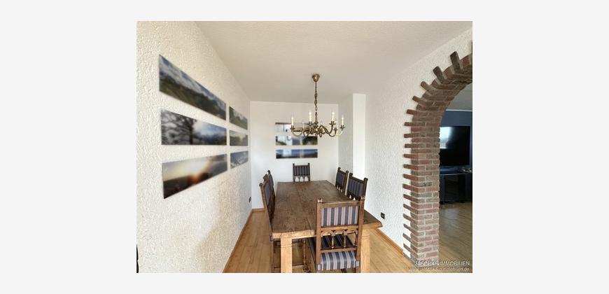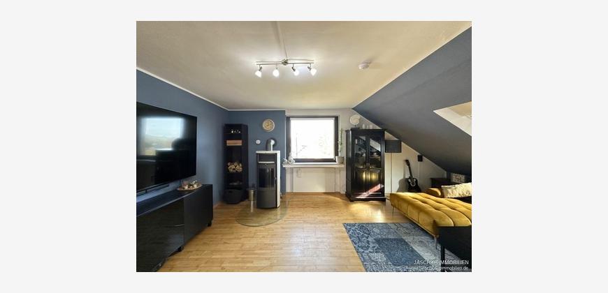 Diese modernisierte Dachgeschosswohnung überzeugt durch eine großzügige und zugleich gemütliche Raumaufteilung in einem gepflegten Mehrfamilienhaus auf einem ca. 2.729 m² großen Grundstück. Der gelungene Grundriss umfasst ein helles Wohnzimmer mit Kamin, ein angrenzendes Esszimmer mit kleinem Balkon und schönem Weitblick, drei gut geschnittene Schlafzimmer, eine separate Küche sowie einen praktischen Abstellraum mit Waschmaschinenanschluss.