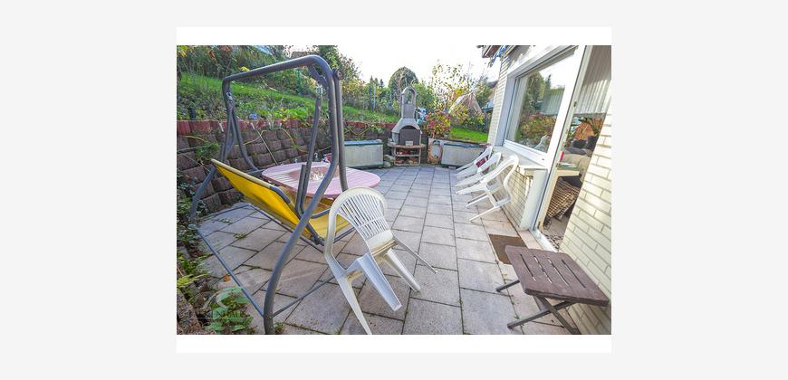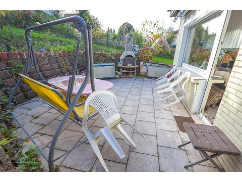 Oberhalb des Grundstücks und der Straße abgewandt steht Ihnen unmittelbar vor Ihrem Wohnraum eine große Terrasse mit Süd-West-Ausrichtung zur Verfügung und bietet Ihnen die Möglichkeit, viele Sonnenstunden zu genießen. Der schnelle Zugang zu Ihrer Terrasse erleichtert das Veranstalten von Partys und Grillnachmittagen. Die vorhandene Markise spendet an besonders sonnigen Tagen ausreichend Schatten.