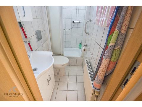Ein Bad im Erdgeschoss wurde in 2018 umfangreich renoviert und befindet sich in einem guten Zustand. Hier ist kein Handlungsbedarf erforderlich. Das andere Bad wurde in ca. 1985 erneuert. Die Fliesen in der Küche sind älteren Baujahres.