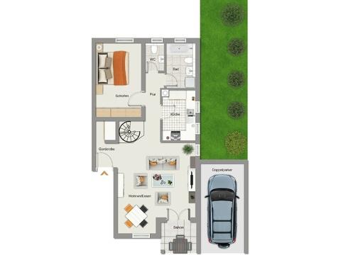 Komfortabel und durchdacht. Ein Pkw-Stellplatz in der Doppelparker-Garage direkt neben dem Haus rundet dieses attraktive Angebot ab.