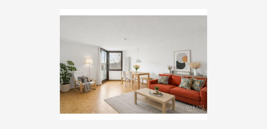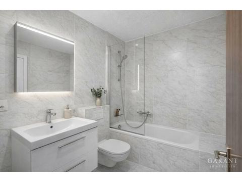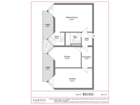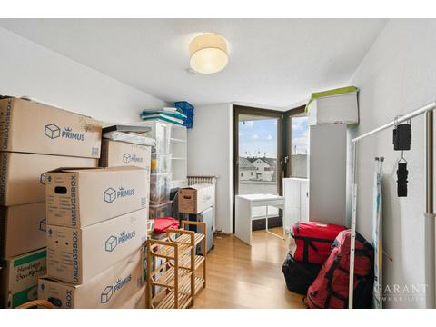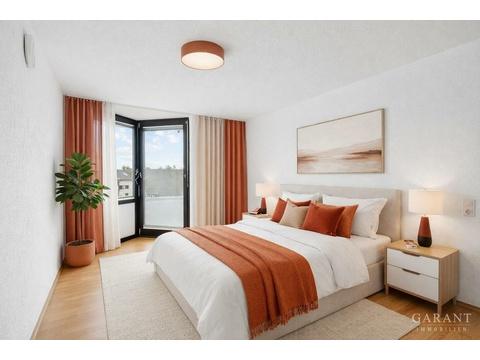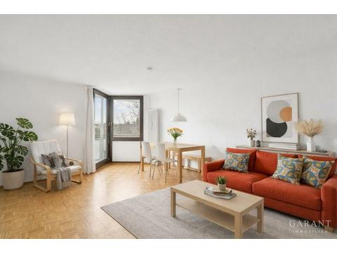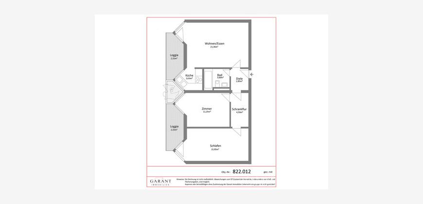 Ein echtes Highlight ist die großzügige Loggia, die sich über alle drei Zimmer - das Wohnzimmer sowie beide Schlafzimmer - erstreckt und von jedem Raum aus zugänglich ist. Große Fensterflächen sorgen für eine helle, freundliche Wohnatmosphäre und unterstreichen den offenen Charakter der Wohnung.