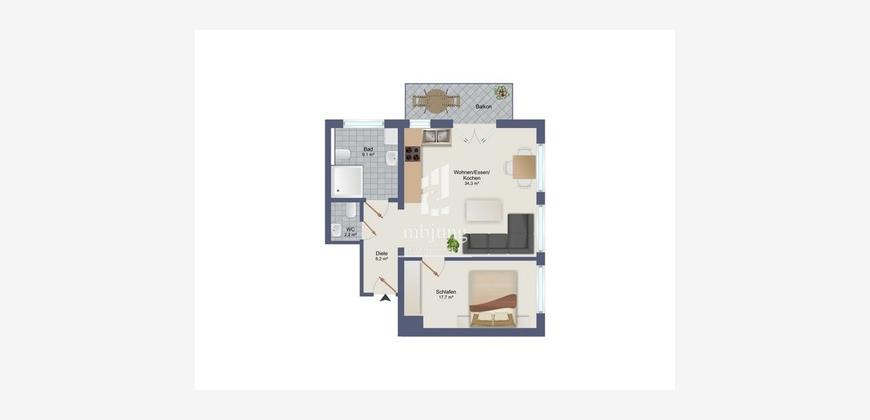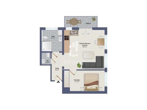 Die Wohnung ist derzeit noch vermietet. Fotos aus der Wohnung sind daher nicht vorhanden.