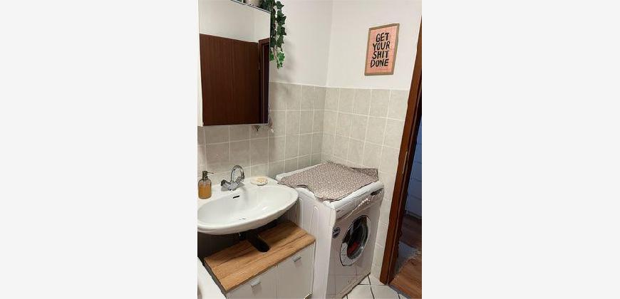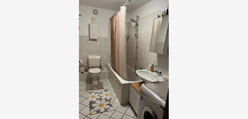 Die Wohnung verfügt über Laminat- und Fliesenböden.