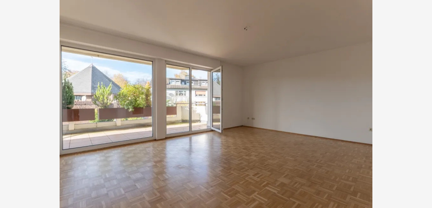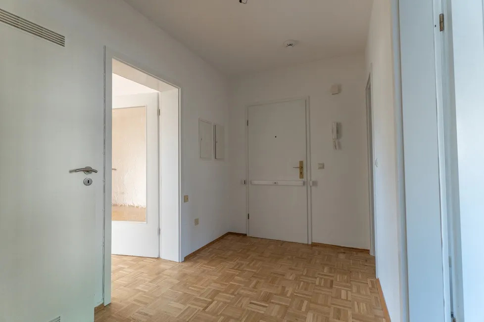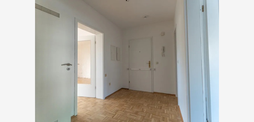 Beim Betreten der Wohnung gelangen Sie zunächst in den zentralen Dielenbereich, von dem aus alle Räume bequem erreichbar sind. Auf der linken Seite befindet sich angrenzend an den Garderobenbereich das moderne Gäste-WC. Rechterhand öffnet sich das großzügige Wohn-/ und Esszimmer mit Zugang zum großen Sonnenbalkon. Dank der Überdachung genießen Sie hier geschützte Stunden im Freien bei nahezu jedem Wetter. Der Balkon ist sowohl vom Wohn-/Esszimmer als auch vom Schlafzimmer aus begehbar und bietet einen angenehmen Blick zur ruhigen Hofseite.