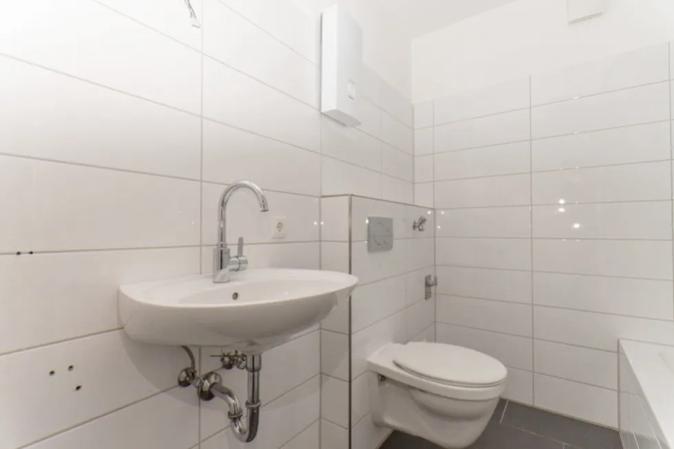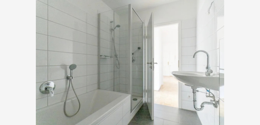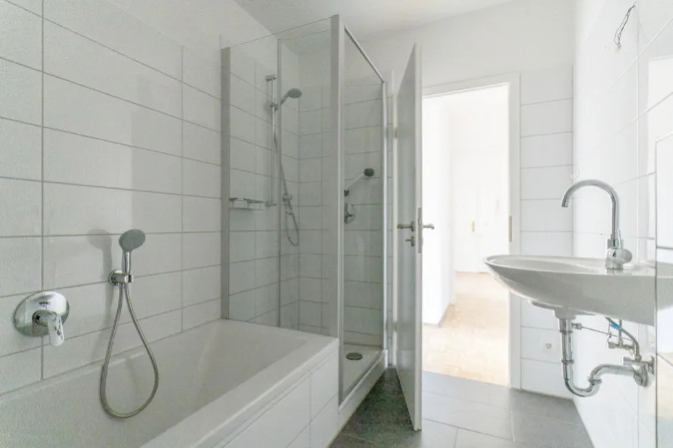 Badezimmer: Mit Dusche und Badewanne und Waschmaschinenanschluss