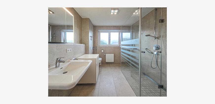 - Tageslichtbad mit ebenerdiger Dusche – von zwei Seiten begehbar – , WC und WMA