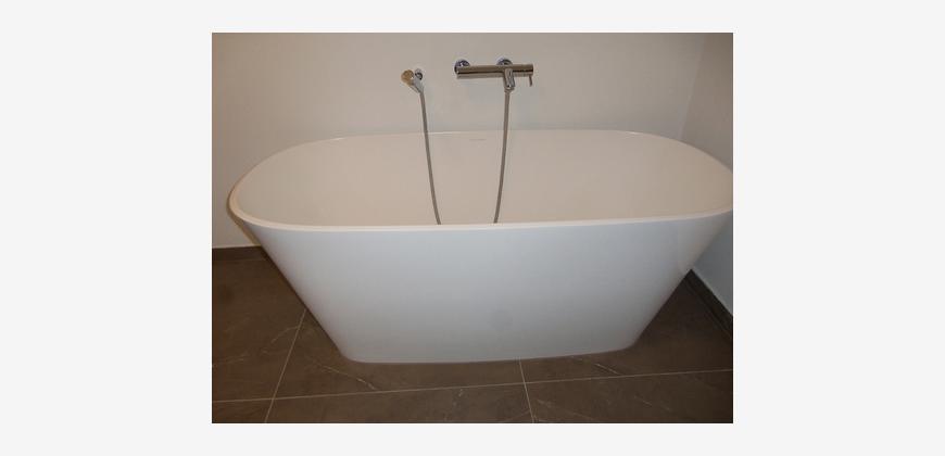 XX Großes Tageslicht Badezimmer mit freistehender Wellnes Badewanne - großes Porzellan Doppel Waschbecken und WC