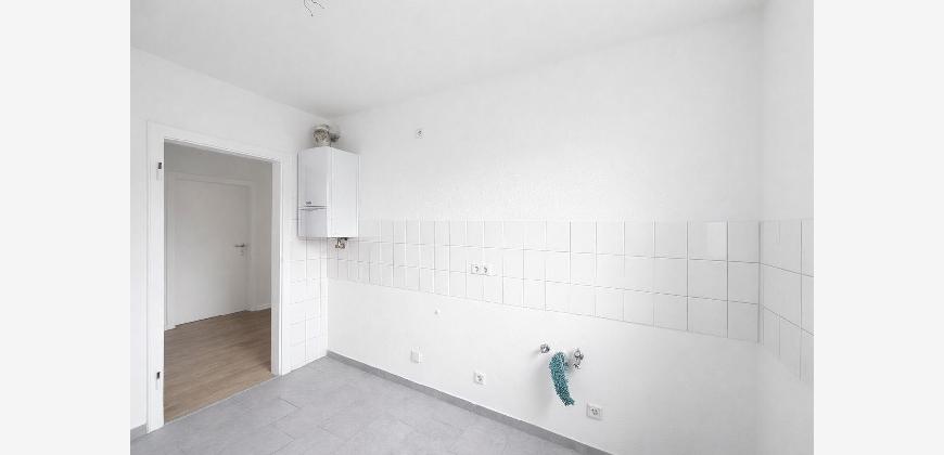 Neben dem Wohn- und Essbereich stehen drei weitere Zimmer zur Verfügung, die flexibel als Schlaf-, Kinder- oder Arbeitszimmer genutzt werden können. Die separate Küche bietet ausreichend Platz für die Gestaltung einer individuellen Einbauküche. Das Badezimmer ist funktional ausgeführt und ergänzt das Raumangebot sinnvoll.