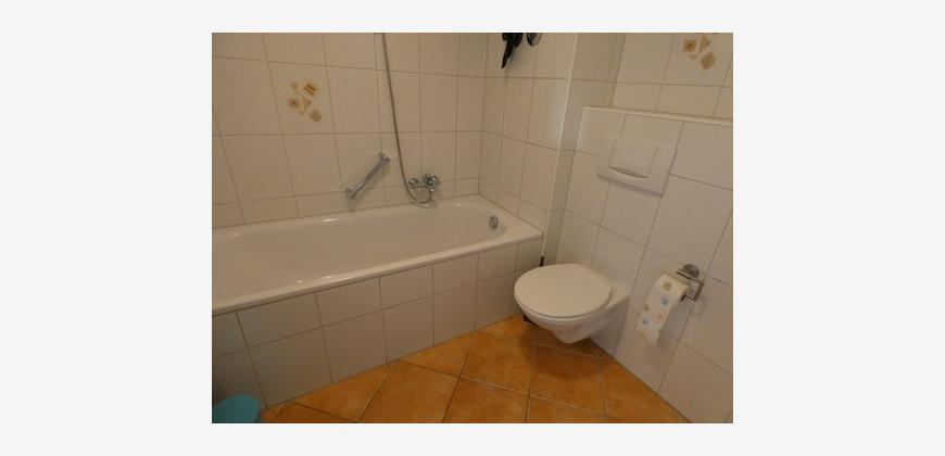Der Wohn- und Essbereich bietet ausreichend Platz zum Wohnen und Entspannen. Das separate Schlafzimmer ist ruhig gelegen und gut geschnitten. Die Küche ist separat gehalten; die vorhandene Einbauküche gehört der bisherigen Mieterin und kann vom neuen Mieter kostenfrei übernommen werden. Das Badezimmer ist mit einer Badewanne, WC sowie einem Waschmaschinenanschluss ausgestattet, verfügt jedoch über kein Tageslicht.
