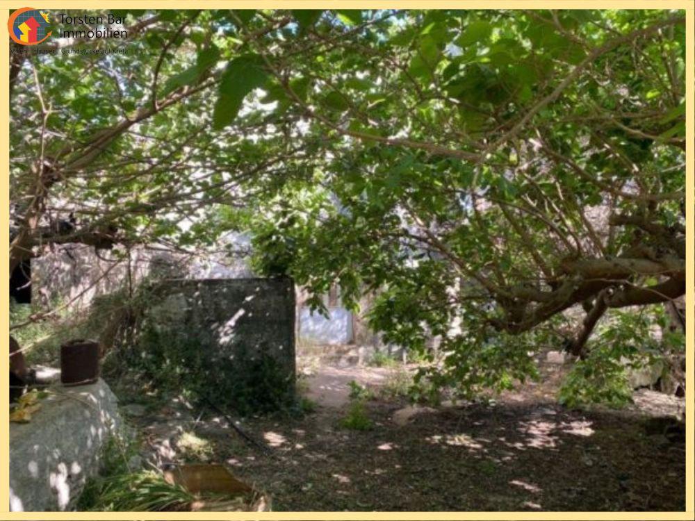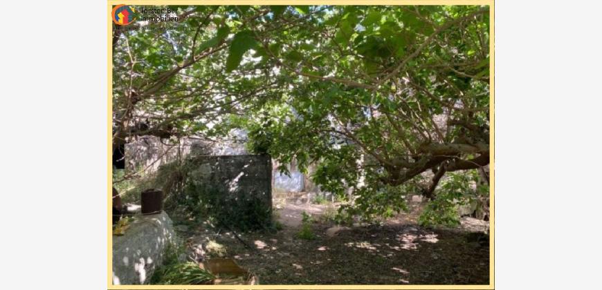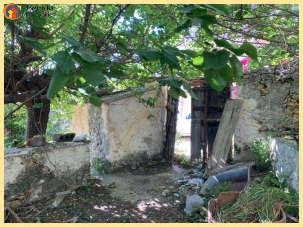 In einer kleinen Gasse gelegen, gelangt man durch ein Tor in einen romantisch bewachsenen Innenhof mit einem großen Walnuss- und Maulbeerbaum. Im Garten gibt es auch einen Zitronen- und Orangenbaum. Das Haus besteht aus einer Küche, einem Wohnzimmer und einem Schlafzimmer. Angeschlossen ist ein Abstellraum, der ein zweites Schlafzimmer sein könnte.