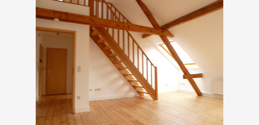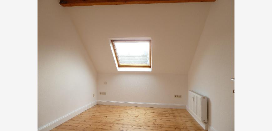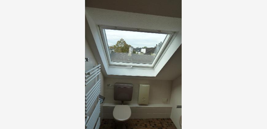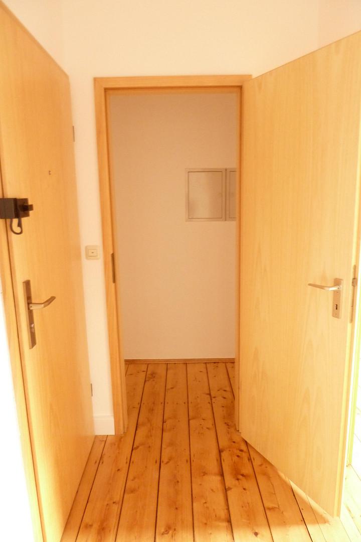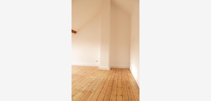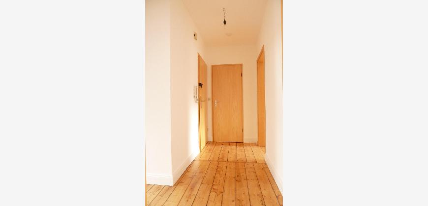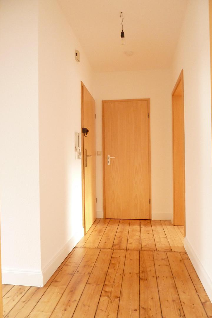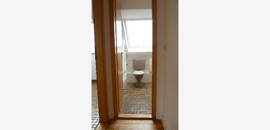 Die hohen Räume vermitteln Altbaucharme, der durch die abgeschliffenen Holzdielenböden unterstrichen wird. Die Wohnung verfügt über helle Naturholztüren und neue Dachflächenfenster. Das Bad mit Dusche und Fenster ist hell gekachelt und mit nussbraunen Objekten ausgestattet. Auch der Boden und der Arbeitsbereich in der Küche sind gefliest. Die Warmwasserbereitung erfolgt über Durchlauferhitzer bzw. Warmwassergerät. Die Wände sind mit Rauhfaser weiß gestrichen und damit bezugsfertig renoviert. Die Elektroausstattung ist als überdurchschnittlich einschließlich Breitbandanschluß und Sprechanlage anzusehen.