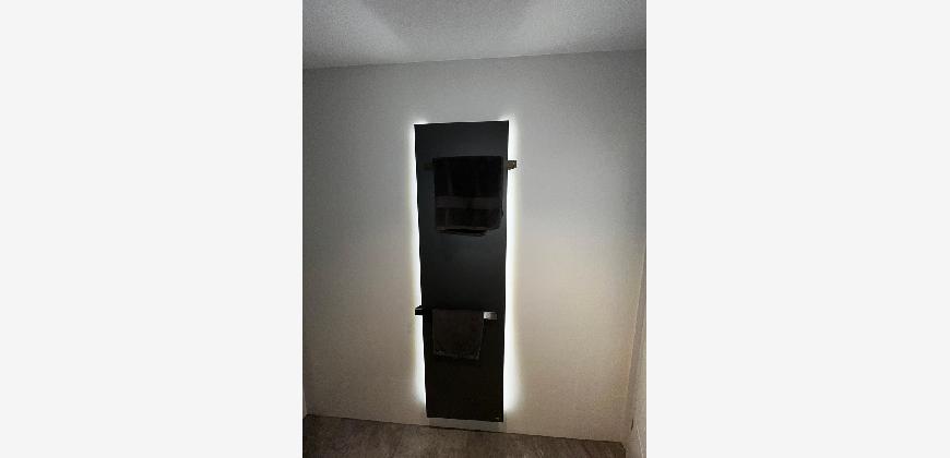 Neue Heizkörper im modernen Design und stilvolle Schalter- und Steckdosenrahmen aus Glas unterstreichen den hochwertigen Gesamteindruck.