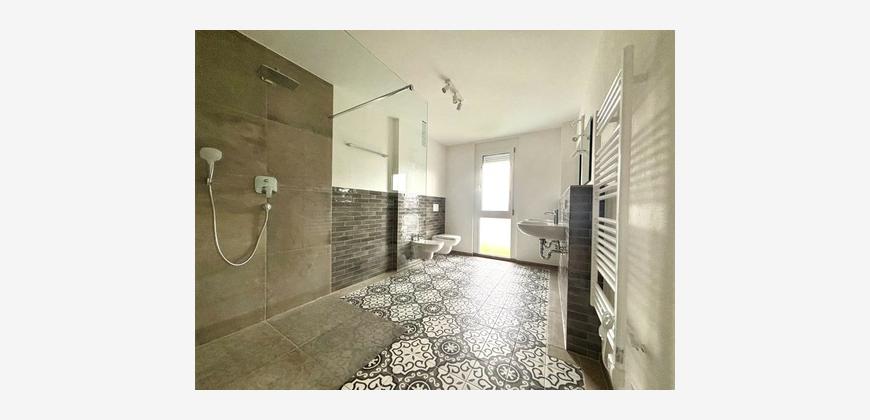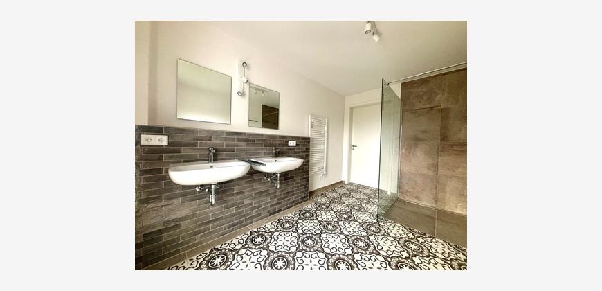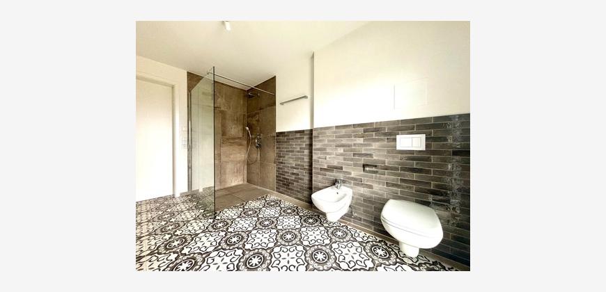 Das stilvolle Badezimmer überzeugt mit Dusche, Bidet, Doppelwaschbecken und Fenster. Ein separates Gäste-Bad mit zusätzlicher Dusche sorgt für höchsten Wohnkomfort. Das Elternschlafzimmer und zwei weitere Zimmer bieten vielseitige Nutzungsmöglichkeiten – ideal als Kinder-, Arbeits- oder Gästezimmer.