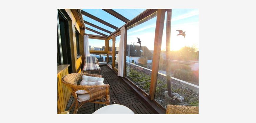 Stellen Sie sich vor: Das Knistern des Holzkamins im offenen Wohnbereich, während die Sonne langsam hinter Ihrem West-Wintergarten untergeht ....