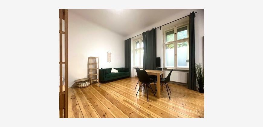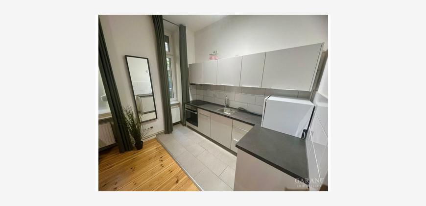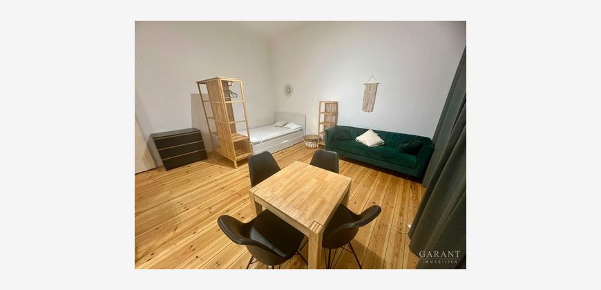 Diese stilvolle 1 Zimmer-Erdgeschoss-Wohnung vereint klassischen Altbaucharme mit modernem Wohnkomfort. Der schöne Dielenboden, die hohen Decken und der durchdachte Grundriss schaffen ein gemütliches und zugleich luftiges Wohnambiente.
