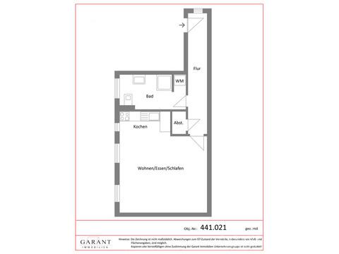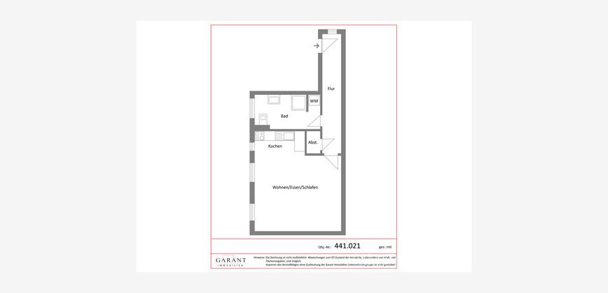 Der offene Wohn- und Schlafbereich ist harmonisch gestaltet, mit einer modernen Küchenzeile, die sich perfekt in den Raum einfügt. Die Wohnung wird teilmöbliert verkauft - sämtliche Möbel sind bereits im Preis enthalten, sodass einem unkomplizierten Einzug nichts im Wege steht.