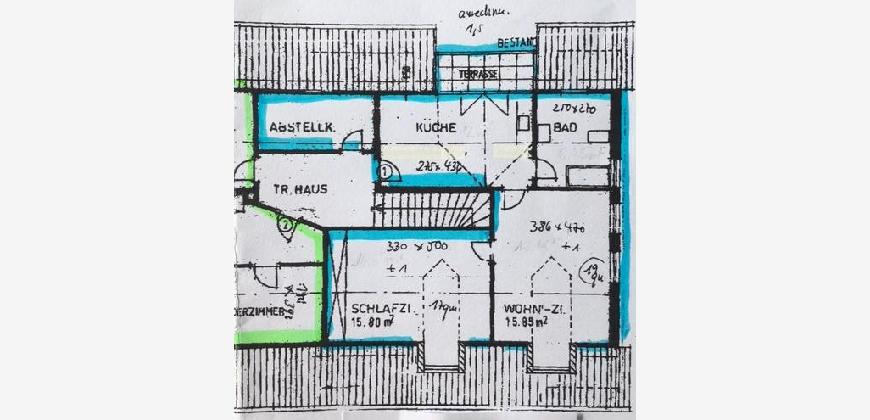 Die 2-Zimmer-Wohnung liegt in einer ruhigen Wohngegend am Stadtrand von