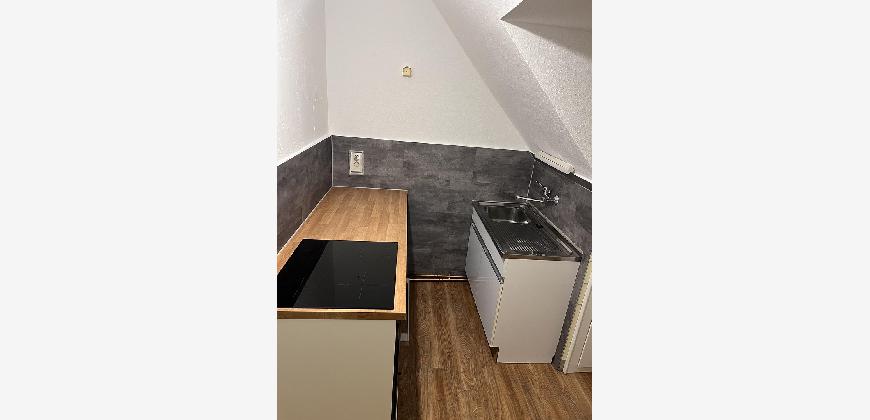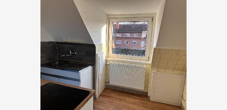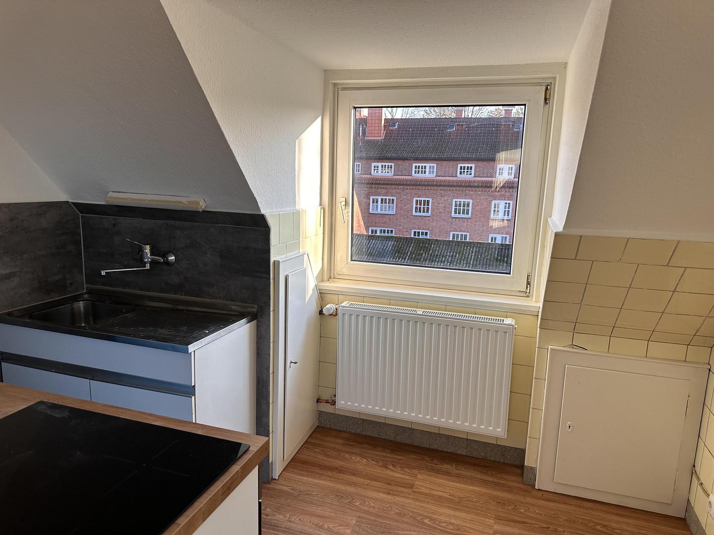 Die Wohnung hat überall große Fenster. Auch das Badezimmer ist mit einem Fenster ausgestattet. Es ist eine Einbauküche vorhanden.